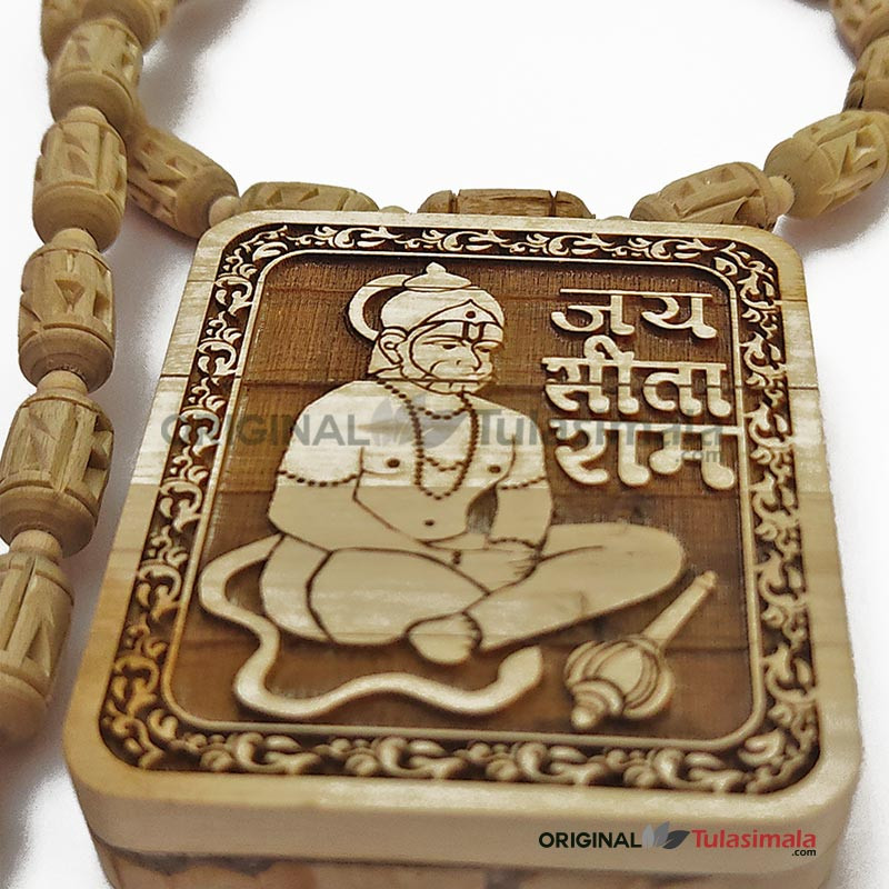 Shri Balaji Hanuman Original Tulasi Locket 3x2.5 Inches with Ram Name Handmade 8mm Beads- We have put the photo of this actual Tulsi Mala.