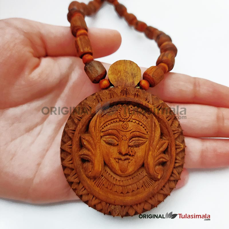 Hand Made Shri Kali Maa Tulsi Locket Mala Golden Colour 6.3x6.3 Centimeters Radius
