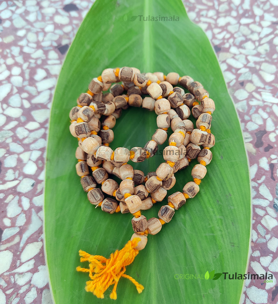 108+1 Beads Original Tulsi Japa Mala 8mm Raw Beads with Orange Tassel