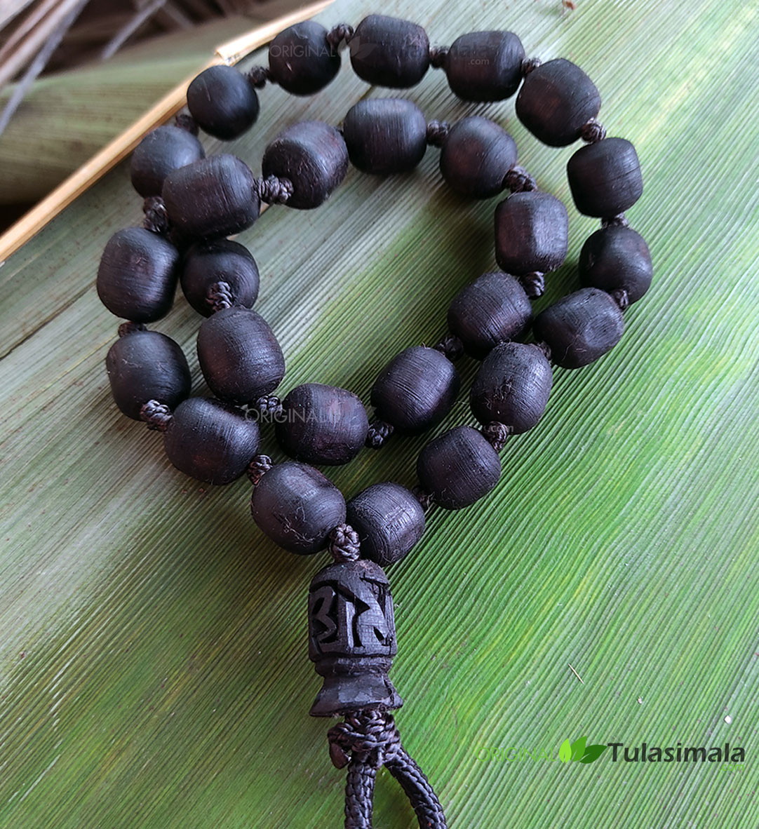 27+1 Black Beads Original Tulsi Japa Mala 16mm Bead Size Handmade Radha Carved Guru Bead